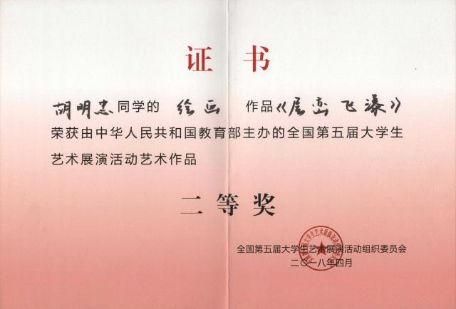 其中,馬建軍老師指導的作品《層巒疊嶂》獲國家級二等獎,此外,馬建軍老師指導的書法《蘭亭序》和繪畫作品《層巒疊嶂》獲省賽一等獎;蘭德、嚴荷菱、陳丹路等老師指導的《大學生利用網頁及APP創新創業研究》、《從<紅樓夢>看書刊版式設計中的“黑”“白”“灰”“線”》等七項作品分獲省賽科研論文類一、二、三等獎;許剛老師指導的《美好的遠方》、湯群老師指導的《梵音思韻》等十二件藝術作品分獲省賽藝術作品類二、三等獎。