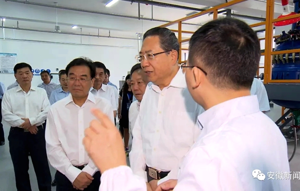 上午8時15分許,李錦斌首先來到合肥學院南艷湖校區,考察先進功能涂料助劑研發中心。該中心是中德校企協同創新中心的建設項目之一,主要解決納米材料大規模工業化應用關鍵技術及裝備難題。李錦斌饒有興致地觀看應用產品、助劑中試線,詳細詢問生產工藝、技術含量、市場應用等情況。聽說該中心共研發20多個系列100多款納米材料涂料助劑產品,他稱贊道,先進功能涂料技術含量高、市場前景廣,你們在基礎研究和應用研究方面很有特色,要持續強化科技研發和市場推廣,努力取得更加豐碩的協同創新成果。