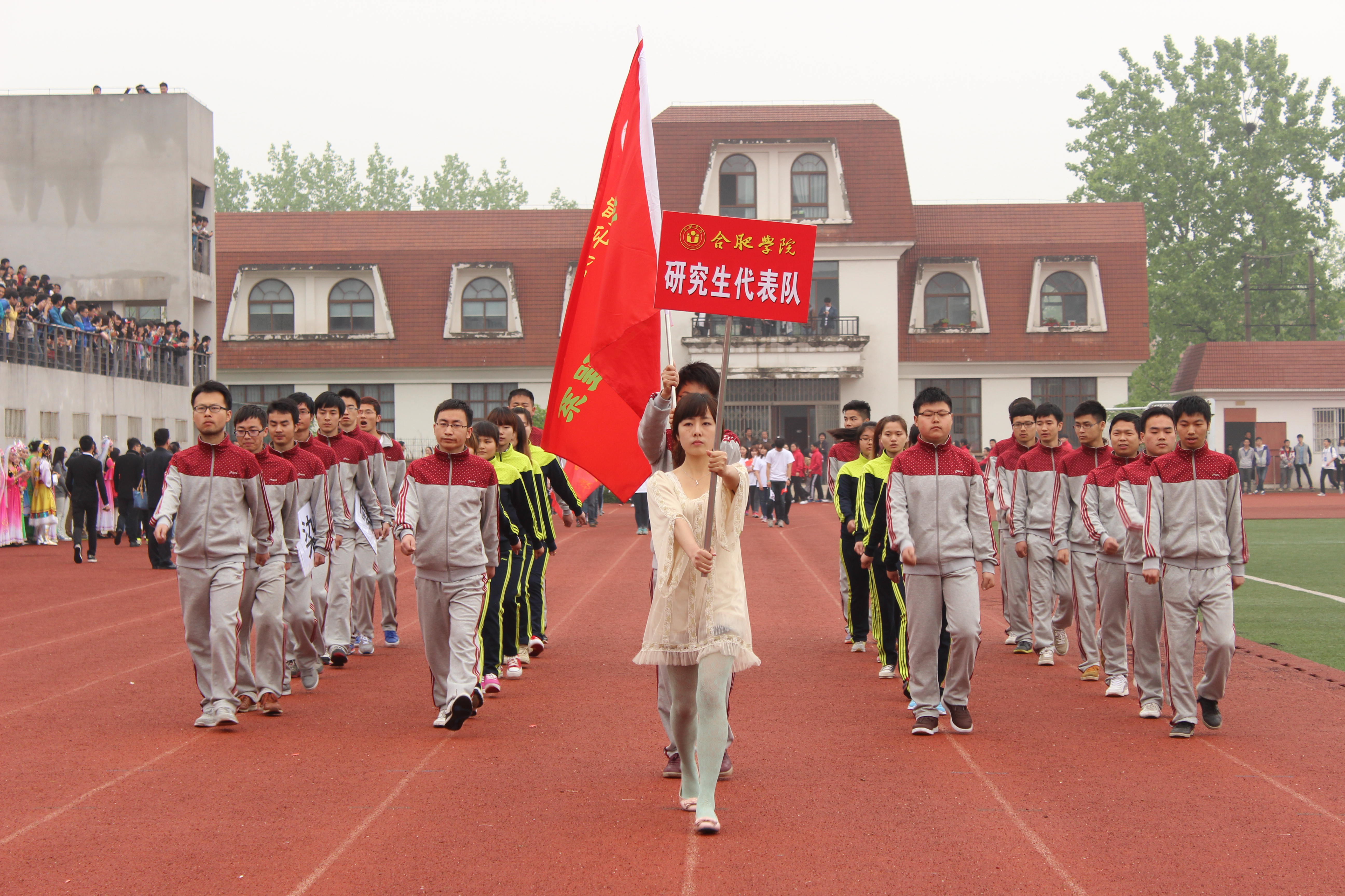 2014年4月17日上午8:20,合肥學院第十屆運動會暨體育節開幕式在我院二期體育場隆重舉行,本次開幕式由丁明副院長主持。此次開幕式上研究生單獨組成一支方陣隊入場,這也是合肥學院運動會歷史上第一支研究生代表隊。