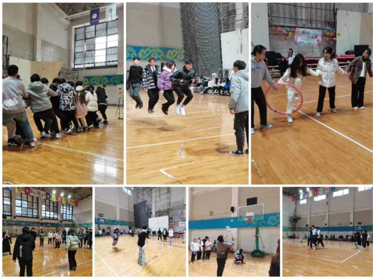 本次運動會的比賽項目分為團體賽和個人賽。團體賽有拔河、跳大繩、一圈到底。個人賽有桶接毽子、接力袋鼠跳、背夾球、羽毛球進桶。運動會開始后,各項比賽依次進行。各隊伍同學在比賽中充分發(fā)揚了團結(jié)合作的精神,在各個項目中全力以赴,爭奪一二三等獎,使運動會既充滿趣味性,又充滿挑戰(zhàn)性。運動賽場上不僅充滿了大家的歡聲笑語,還有彼此的加油喝彩,現(xiàn)場精彩紛呈,真實體現(xiàn)了大家極大的熱情。
