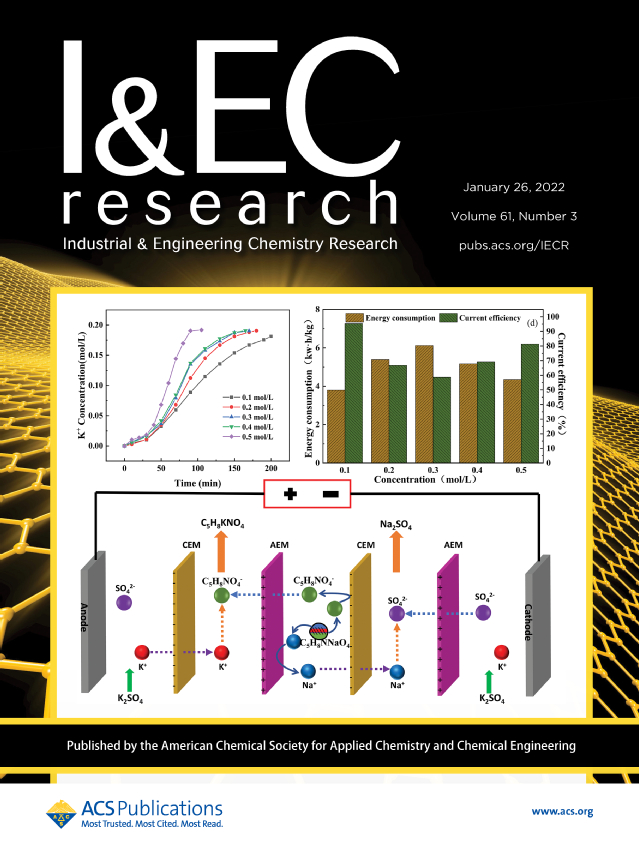 近日,我校為第一單位,2019級環境工程專業研究生高文杰(導師:吳克、衛新來)為第一作者的研究成果《A Green and Economical Method for Preparing Potassium Glutamate through Electrodialysis Metathesis》以封面文章的形式發表在國際化工領域重要學術期刊Industrial & Engineering Chemistry Research(IF:3.720)上。這是高文杰碩士期間的第四篇SCI論文,其它三篇分別發表在影響因子為4.106、7.312的期刊上,其中一篇被選為“編輯推薦”。