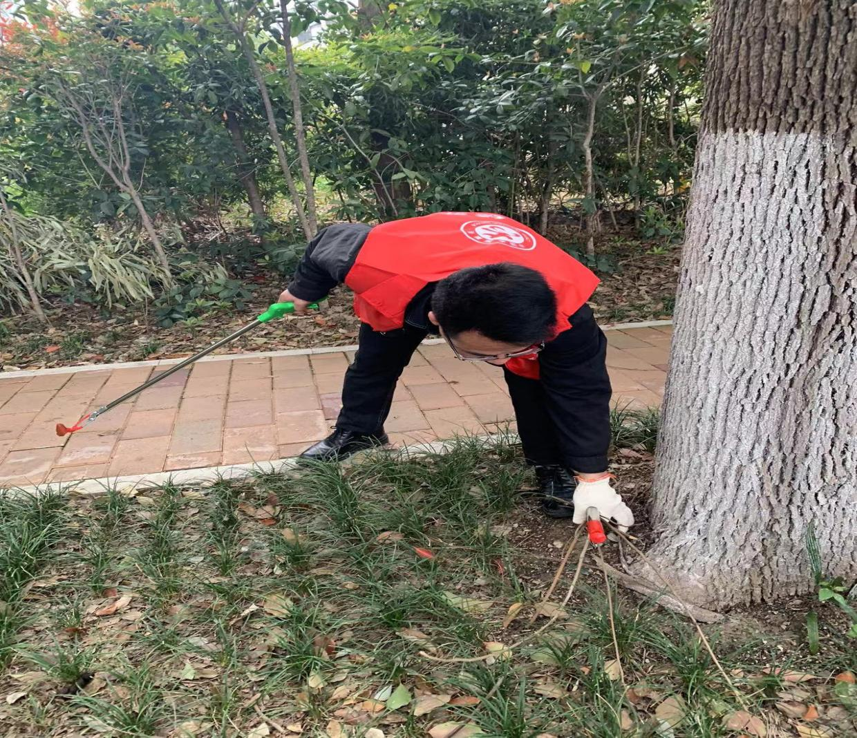 ▲合肥學院志愿者清理鄉村花園小區草坪垃圾
