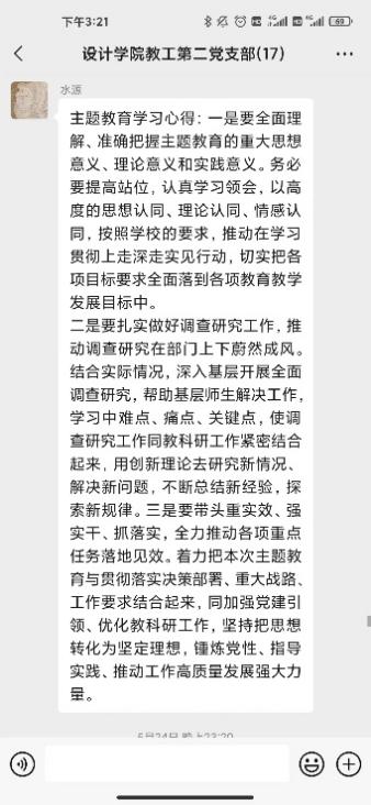 研討會第二環(huán)節(jié)支部黨員針對合實際圍繞“三問”(過去學得怎么樣、現在干得怎么樣、將來打算怎么辦)展開了線上交流研討。黨員教師在支部微信群積極展開研討,深入剖析過去、現在、未來的工作和學習。