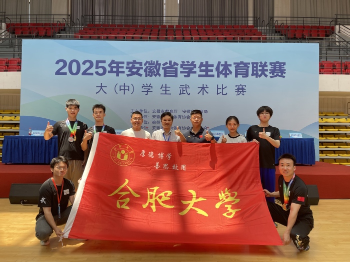 6月18日至23日,2025年安徽省體育聯賽大學生武術比賽在宿州學院舉行。全省44個代表隊、590名運動員參加比賽,我校武術隊在毛獻亮、徐軍老師的指導下,參加了長拳、南棍、南拳、對練等7個項目的比賽,獲得2金2銀的優異成績。其中,孫晨榮獲男子甲組自選南棍冠軍,徐家豪奪得男子甲組自選長拳冠軍,孫晨在男子甲組南拳獲得亞軍,徐家豪、孫晨、王星墨組成的對練隊伍在甲組對練項目中摘得銀牌。