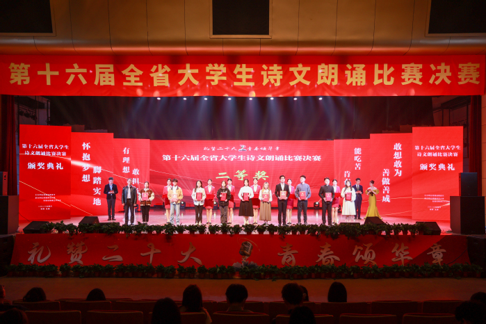 本次大賽由安徽省教育廳、安徽省語(yǔ)言文字工作委員會(huì)、安徽省朗誦藝術(shù)學(xué)會(huì)、安徽省普通話培訓(xùn)測(cè)試中心等聯(lián)合主辦,大賽主題為“禮贊二十大,青春頌華章”。省內(nèi)43所高校選送了130余項(xiàng)作品參賽,經(jīng)專家遴選,共有49項(xiàng)作品進(jìn)入決賽。經(jīng)過(guò)激烈角逐,我校作品在34項(xiàng)非專業(yè)組的作品中名列第8名,充分展現(xiàn)了我校學(xué)生較高的藝術(shù)素養(yǎng)、文學(xué)底蘊(yùn)和良好的精神風(fēng)貌。