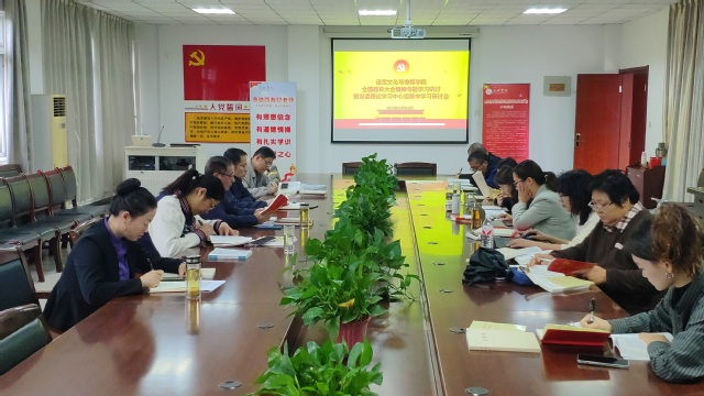 10月22日,語言文化與傳媒學院黨委理論學習中心組在學院大會議室舉行學習會,專題學習習近平總書記考察安徽重要講話精神和全國教育大會精神,學院領導班子成員、黨委委員、紀委委員、科級干部及各黨支部書記、系(中心)主任參加,會議由院黨委書記儲昭輝主持。