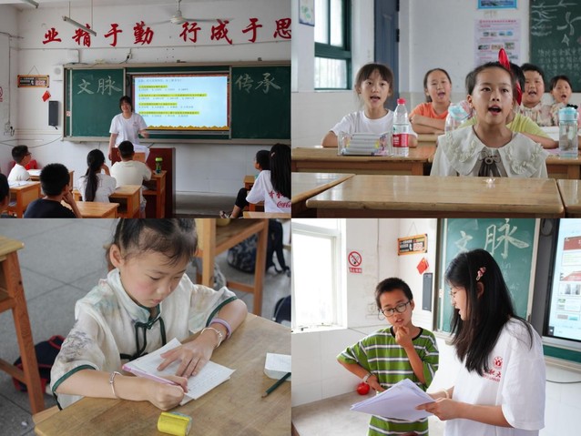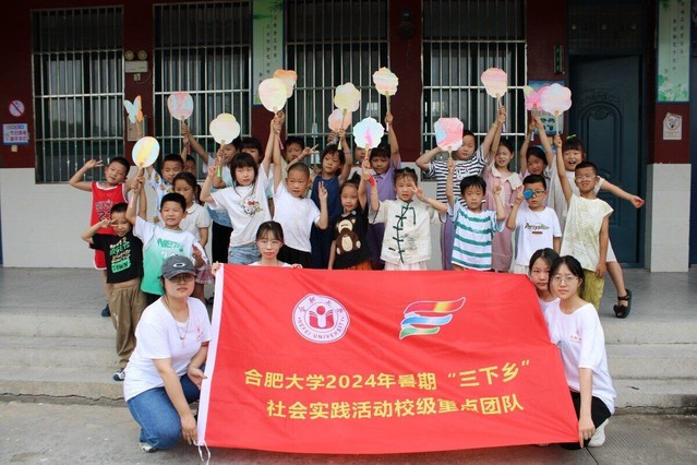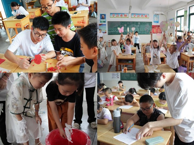 下午的教學活動在裕安區石板沖鄉中心學校進行。為培養學生的愛國精神,提升審美能力,音樂組以愛國視頻為切入點,進行了《歌唱祖國》的音樂教學。課堂上學生跟著節奏打著節拍,聲聲童真的旋律徜徉在課堂的每個角落。美術組老師對團扇的結構顏色等進行了簡單講解后,小朋友們便迫不及待地拿起畫筆,開始在紙上描繪自己心中的團扇。為讓學生在動手中體會中華優秀傳統文化的魅力,文藝組組織開展了“‘漆’彩紛呈,‘扇’染夏色”課堂活動。隊員們先為制作漆扇示范步驟,孩子們很快就掌握了基本方法,帶好手套躍躍欲試。一把把白色的扇子,浸入漂漆中,同學們切身感受了一次色彩流動的美學。漆扇特色課堂開展取得了不錯的反響,隊員們和孩子們積極交流,相處融洽,呈現出一幅幅充滿童趣與活力的作品。