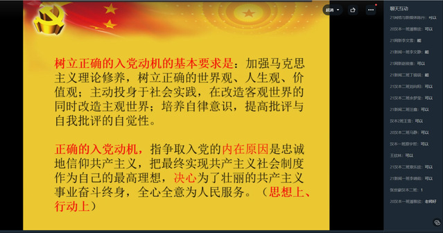 通過本次課程的學(xué)習(xí),同學(xué)們對如何發(fā)展成為一名黨員有了進(jìn)一步的了解,并且深刻認(rèn)識(shí)到一名真正黨員身上所要肩負(fù)的責(zé)任與擔(dān)當(dāng)。