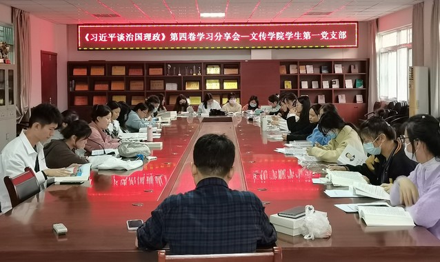 1014日下午四點,為迎接黨的二十大的勝利召開,語言文化與傳媒學院學生第一黨支部在一區善思樓C座大會議室召開《習近平談治國理政》第四卷學習分享會,會議由語言文化與傳媒學院學生第一黨支部書記劉政主持召開。