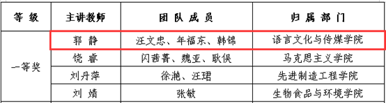 近日,合肥學院公布第三屆教學創新大賽獲獎情況,語言文化與傳媒學院郭靜老師榮獲一等獎,魏修治老師榮獲三等獎。