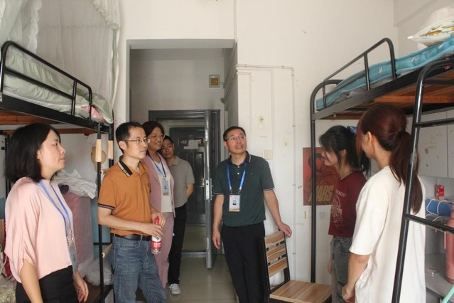 9月7日,語言文化與傳媒學院黨委書記儲昭輝、院長丁增武、院黨委副書記張愛萍、副院長殷明明及學工辦主任顧盼盼一行人深入我院2023級新生宿舍,走訪看望新生,了解新生需求,表達對新生的關心關懷,加強宿舍安全管理。