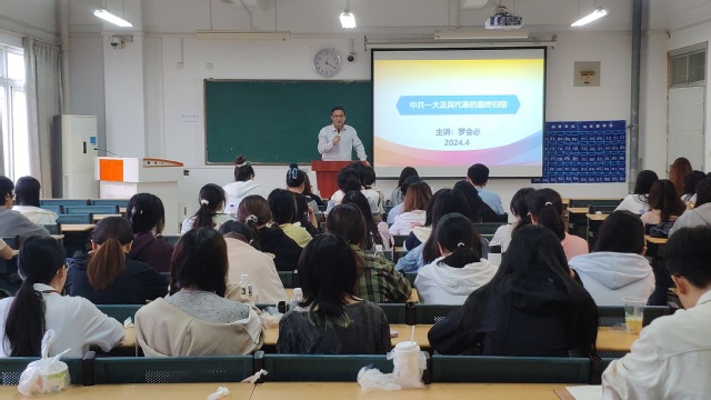 4月28日中午,語言文化與傳媒學院在5棟309教室舉行了入黨積極分子培訓班第二次理論授課。此次黨課由合肥大學紀委副書記羅會必主講,主題為“中共一大及其代表的最終歸宿”,培訓班全體學員參加課程。