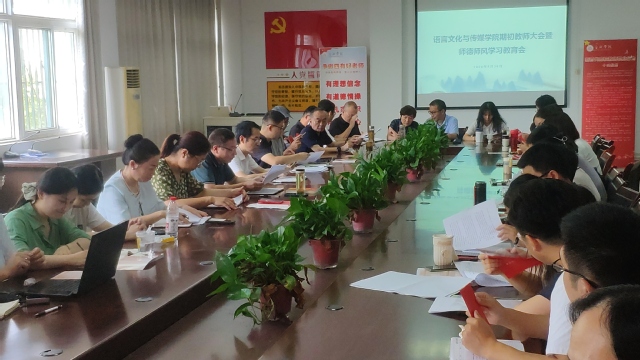 830日,語言文化與傳媒學院在學院大會議室舉行學習貫徹黨的二十屆三中全會精神宣講會,學院黨委書記儲昭輝作宣講,全體教師參會。